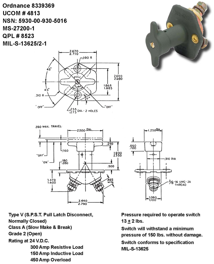 UCOM # 4813 Ordnance 8339369 N.S.N. 5930-00-930-5016 MS-27200-1